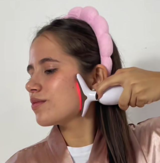 Professionell hudvårdsenhet med EMS-teknologi för lyft, fasthet och lyster – direkt i ditt eget hem.